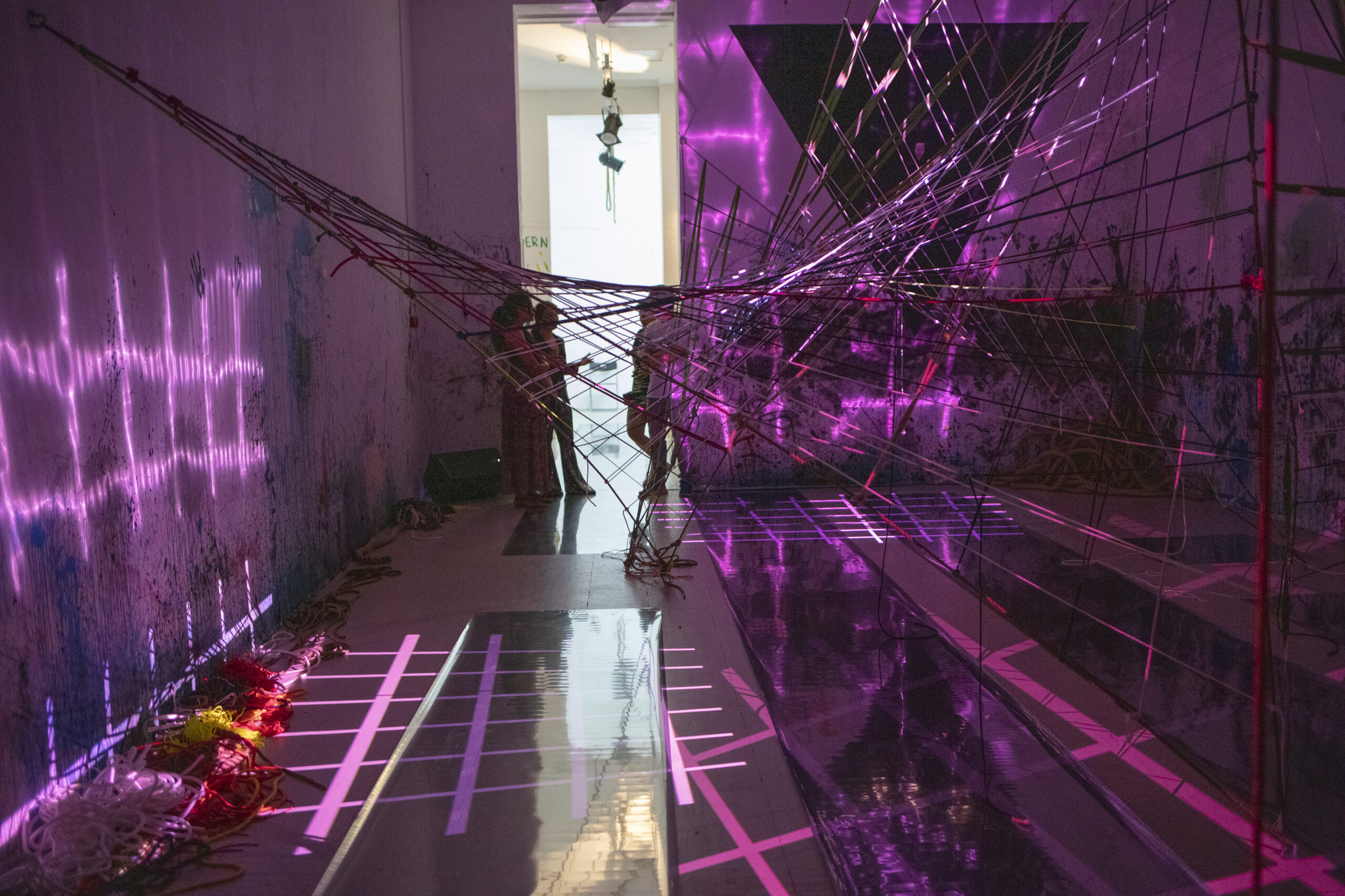 Lola Maggi heeft de afgelopen periode deelgenomen aan het Doc4 residency-programma. Het werk dat tijdens deze residentie is gemaakt, is een installatie die zich richt op de intersecties van licht, geluid en vorm. Het tweede deel van deze tentoonstelling geeft een inzicht in het creatieve proces van Lola tijdens de residentie. De tussenruimte is samen met het Jong Feministisch Collectief Haarlem gemaakt. In gesprek stelden zij vragen die terug te vinden zijn in de tussenruimte, tussen de installatie en de achterruimte.