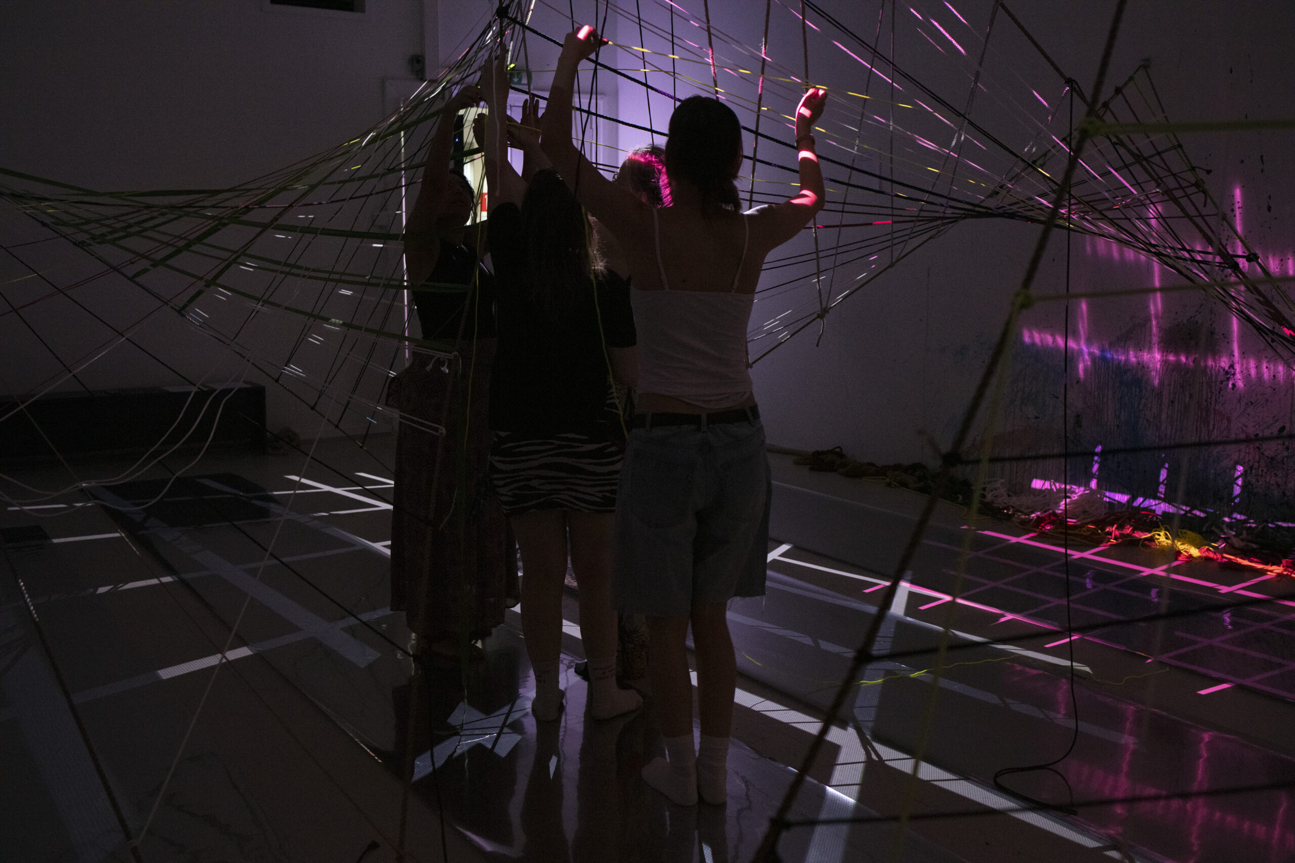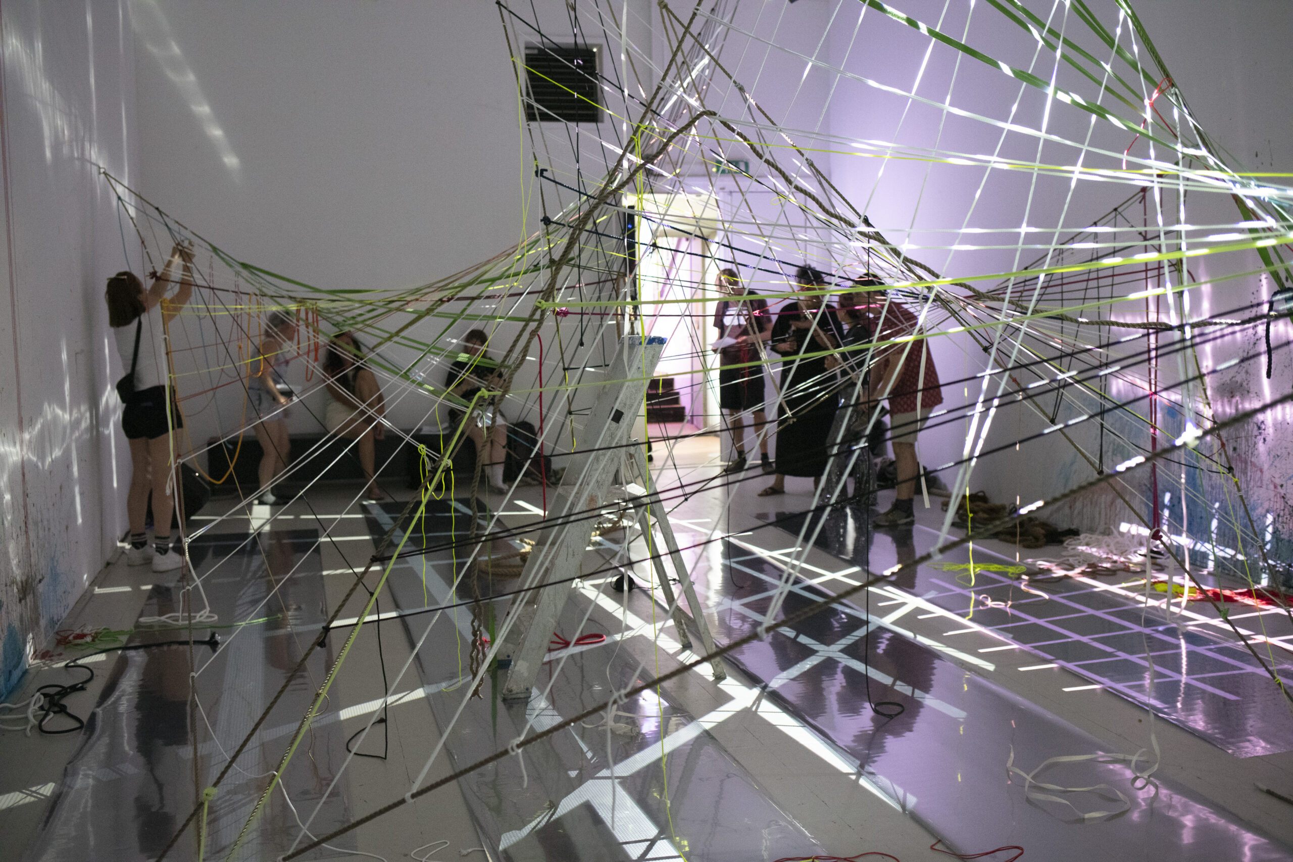 Tijdens deze tentoonstelling wordt u uitgenodigd om interactie aan te gaan met een grote installatie, speciaal gemaakt voor de ruimte en om deel uit te maken van het netwerk dat samen een toekomst creëert.