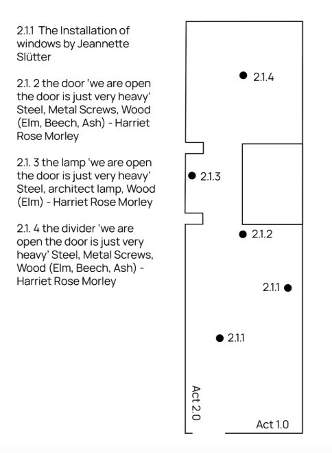 2.1. 4 the divider ‘we are open the door is just very heavy’ Steel, Metal Screws, Wood (Elm, Beech, Ash) – Harriet Rose Morley