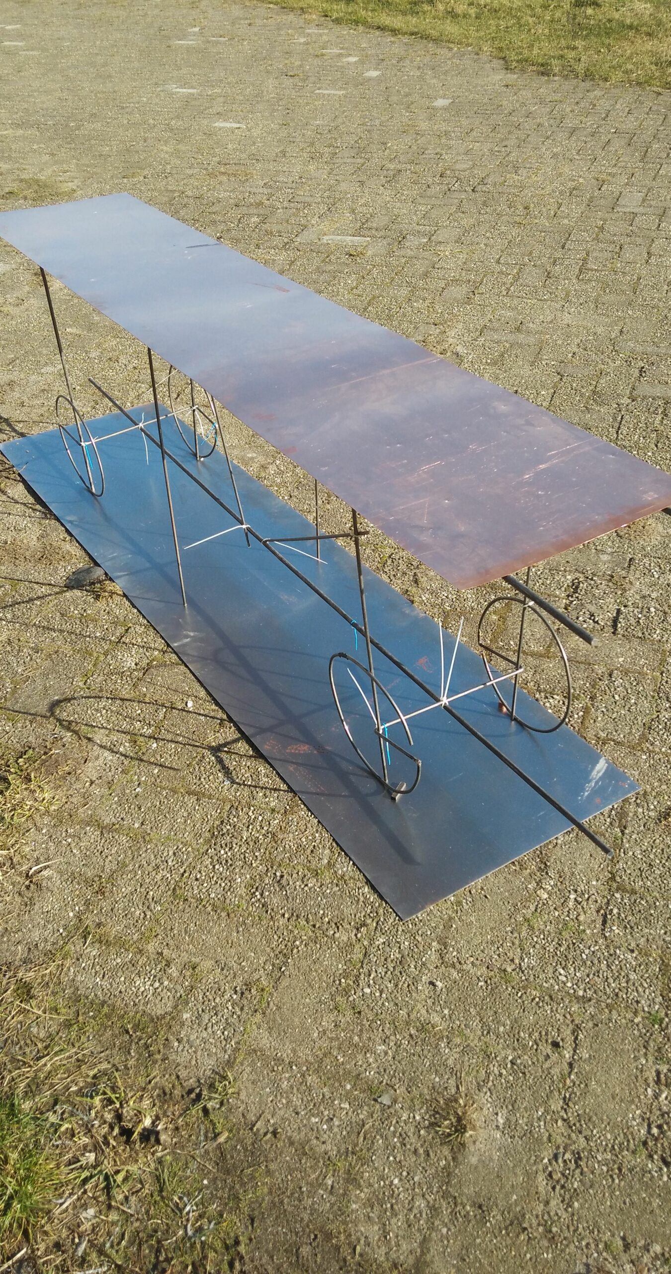 Een stuk ijzer, een brok hout, een “achteloos” weggegooid object mogen na een onbepaalde rijpingsperiode mede inhoud geven aan een nieuw beeld. Zo kan een onderdeel van een piano toch haar muzikaliteit behouden en toevoegen aan het ontstane ruimtelijke object. Elk materiaal heeft één of meerdere levens in zich en door ze te herschikken, en door ze te combineren worden nieuwe verhalen geboren en ontstaan beelden die het verleden, heden wel wellicht de toekomst in zich dragen.