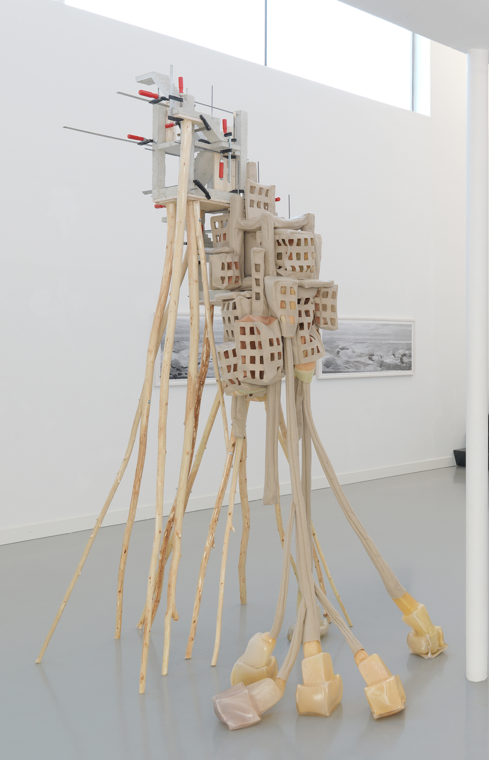 ‘Hoogwaardige’ materialen als glas en keramiek combineert ze met moeiteloos met vormen van beton, metaal of hout, die een industrieel en zakelijk karakter hebben. Er ontstaat wrijving. Vormen worden door de ruimte getrokken, en veelal torenen de beelden boven de toeschouwer uit. Architectonische vormen weerspiegelen thema’s als ‘groei’, het ‘onpersoonlijke’ en de ‘zakelijkheid’, waar meer natuurlijke vormen de kijker met zijn twee voeten terug op aarde trekt.